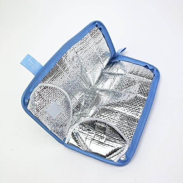 キープスタンドは内側が保冷・保温にすぐれたアルミシート付きなので、ペットボトルや缶飲料を入れるのにぴったりです。サイズにあわせて大きさを調節できるの便利なポイントです。