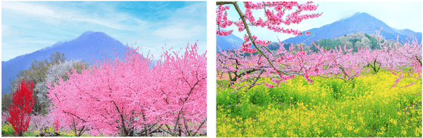 桃だけでなく桜や菜の花が咲き誇る桃源郷のような風景を楽しんだ後は、ワインとバイキングのペアリングが楽しめる、ありそうでなかった温泉宿・ホテル新光を訪ねてみませんか?