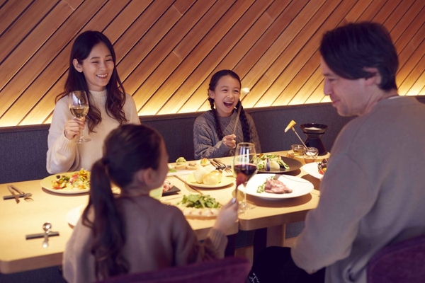 リゾナーレ那須には、イタリア料理のコースを提供するメインダイニング「OTTO SETTE NASU」と、好みの料理を自分で取って楽しめるビュッフェレストラン「SHAKI SHAKI」があります。「OTTO SETTE NASU」では、地域の生産者たちが丹精込めて育て上げた旬の食材を中心に使用しています。料理とともに、ソムリエがセレクトしたイタリアの自然派ワインを楽しめるレストランです。「SHAKI SHAKI」では、ビュッフェスタイルの料理に加えて、ブルーチーズを使用したソースにディップして楽しむ「野菜のロースト」、メインディッシュは日替わりでローストビーフやポルケッタ(豚肉の丸焼き)をそれぞれのテーブルに届けます。2つのレストランからお好きな方を選び、夕食を楽しめます。また、朝食は本プラン限定のモーニングボックスをお部屋に届けます。焚き火で焼き上げるホットサンドや、ミルをつかった挽きたてのコーヒーなどをお楽しみいただけます。
