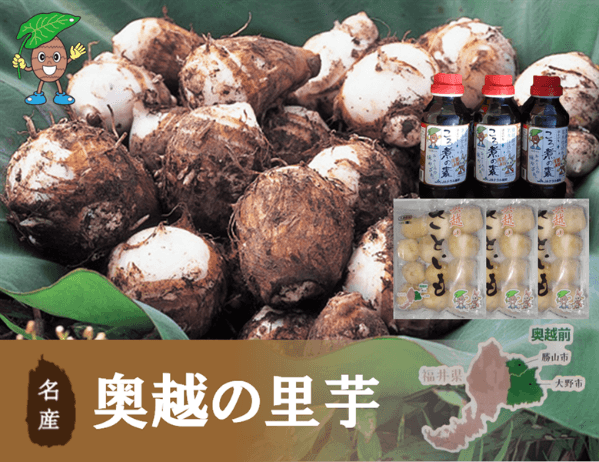 福井人が愛して止まない伝統食材で身がしっかりしていて煮崩れしにくい奥越さといもを、薄皮を残した状態で洗い上げています。急速冷凍したことで煮崩れしない引き締まった冷凍里芋を調味料のセットにした商品です。