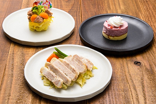 お食事の時間もわんちゃんと一緒にお過ごしいただけるよう、今回のリニューアルでレストランを改装。コンパクトながら落ち着いた造りのレストランで、大江戸温泉物語グループ自慢のバイキングをお楽しみいただけます。また、わんちゃんには、ハンバーグプレートやポークソテーなどのお食事系から、ケーキなどのデザートまで、種類豊富な専用の別注グルメもご用意いたします。(有料)