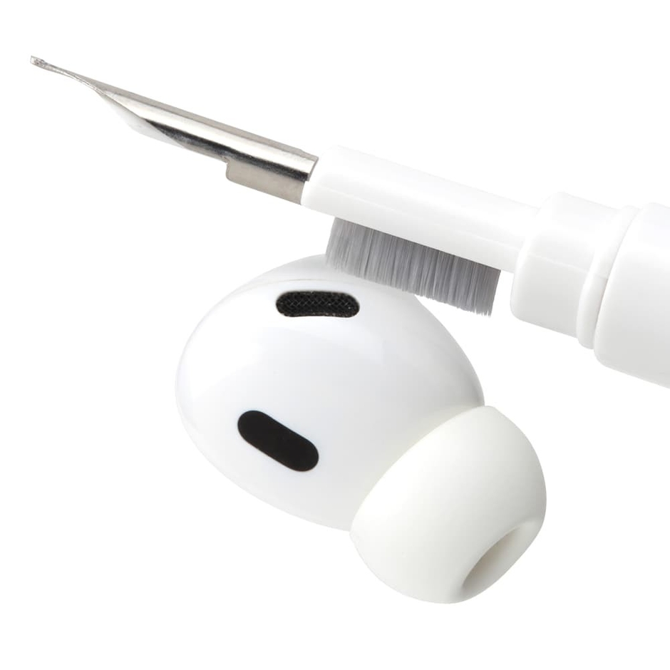耳垢などの固着した汚れを掻き出すペン先と、メッシュ部分を傷つけない高密度ブラシで、安全かつ徹底的に清掃可能です。
