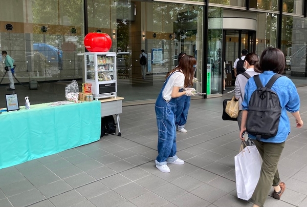 株式会社KOMPEITO(東京都渋谷区、代表取締役 渡邉瞬)が展開する“置くだけ健康社食”「OFFICE DE YASAI (オフィスで野菜)」は、コロナ感染拡大以降、新規導入が2倍以上に急増しています。コロナ禍における働く人の健康課題や、免疫力アップへのニーズが高まる中、8月31日の831(野菜)の日に、野菜摂取の呼びかけを行いました。当日は、カゴメ株式会社の野菜摂取量が推定できる機器「ベジチェック」にご協力いただき、会場のオフィスビルに勤めるオフィスワーカーに対し、推定野菜摂取量を計測していただいた方にOFFICE DE YASAIの「やさいDELI」を配布いたしました。