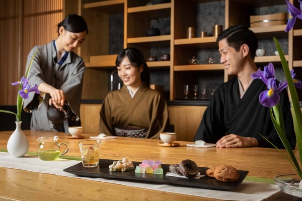 「茶菓でもてなす」というように、和菓子とお茶は切っても切れない関係です。本イベントでは、客室やお茶
