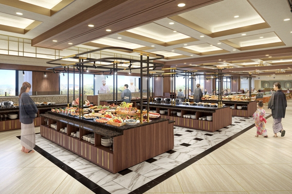 4階フロアのレストランを全面改装。木のぬくもりが感じられ、自然を感じられる食事スペースへ生まれ変わります。夕朝食もPremiumシリーズへグレードアップし、豪華メニューやご当地グルメを豊富にご用意いたします。