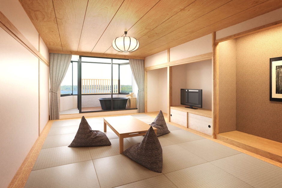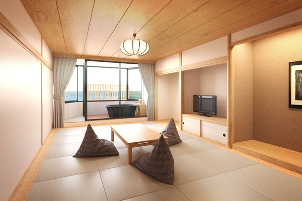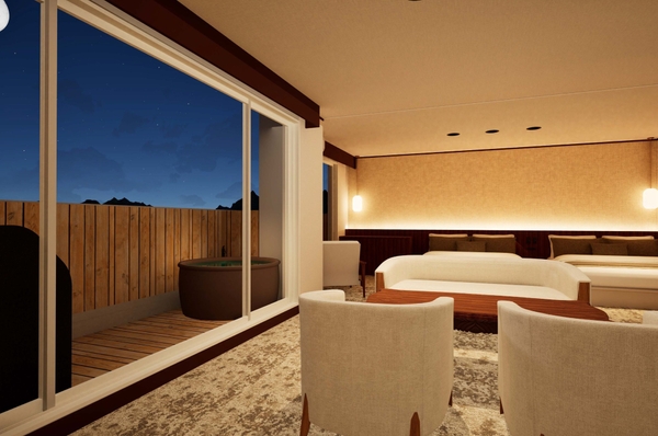 客室の一部を露天風呂付客室へ変更いたします。お部屋でも開放感の味わえる入浴をお楽しみください。また、ベッドタイプの客室も追加いたします。お子様連れにうれしいキッズスペース付客室も新たに登場いたします。気軽にキャンプ泊が楽しめるグランピングエリアルームもあり、多彩な客室からご利用シーンに合わせお選びいただけます。