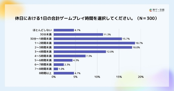 ・休日の1日あたりのプレイ時間は「1〜2時間未満」が最多で18.7%