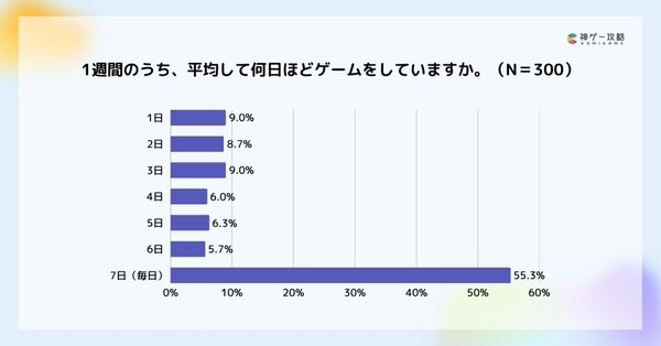 ・1週間のプレイ頻度は「7日(毎日)」が最多で55.3%