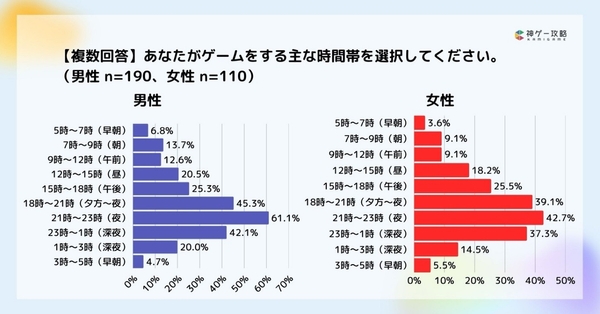 〜女性の方がプレイ時間は短く、プレイをする時間帯は男女共に21~23時が最多〜