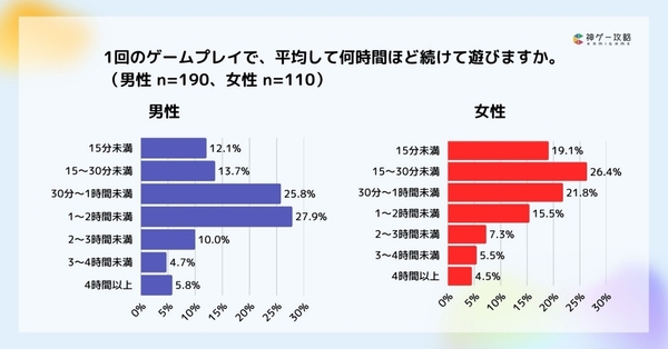 1回のゲームプレイで続けて遊ぶ時間は女性の方が短い傾向に