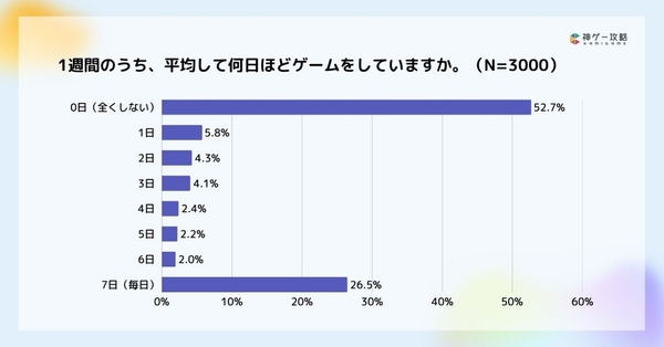 1週間のゲームプレイ日数は7日(毎日)が過半数以上