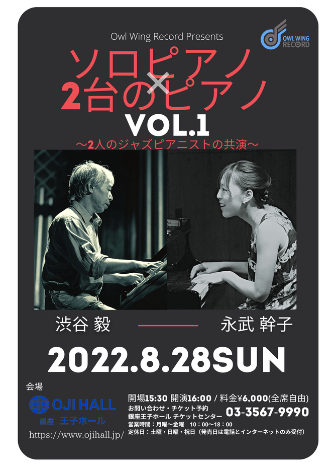 Owl Wing Record主催『ソロピアノ × 2台のピアノ vol.2』〜2人のジャズピアニストの共演〜