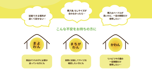 わんトライ便+は、気になるサポーターやコルセットなどをレンタルで試すことができるサービスです。リハビリや介護など一定の期間中だけ使用したい、うちの子に合う製品か一度試してみたいという方におすすめです。