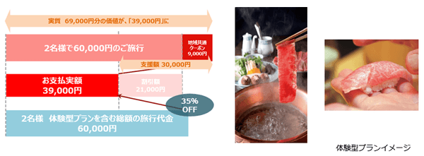 本プランは、リンベル社が取り扱うミシュラン星付きホテルレストランの「お食事チケット」をはじめ、「宿泊チケット」「日帰り温泉チケット」などの複数のラインナップをご用意します。このパッケージツアーは、体験ギフトの代金を含めた旅行代金総額からGo To Travelキャンペーンの支援が受けられるため、個人で手配するよりお得で特別なプランとなります。