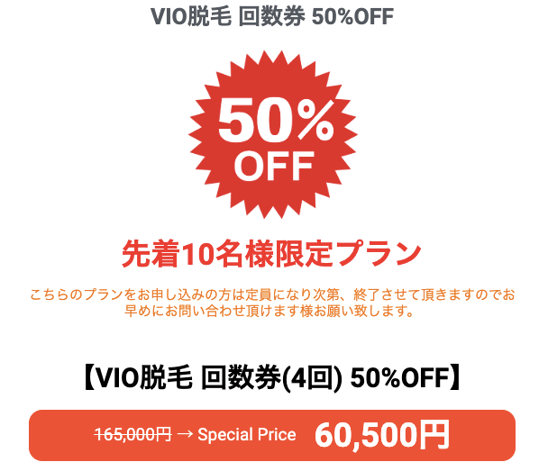 ・VIO4回分回数券半額 60,500円(税込)