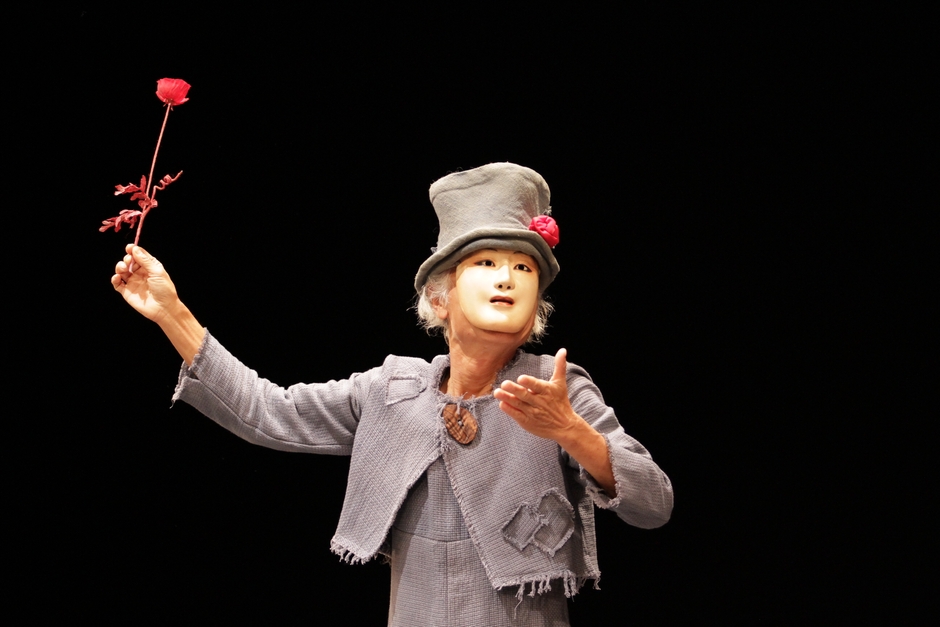 日本の伝統的な能面の製作技法による、能面作家ふじもりふじお氏の手になる陰と陽の創作面二面を使い分けて、フルートの生演奏により演じる、日本では他に類を見ない舞台です。生きることの不条理を描いた作品は国内外で高い評価を得ています。