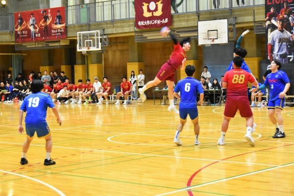 MEIJO SPORTS PROJECT(通称:MSP)が主催する本学と中京大学のハンドボールのホームゲームが10月15日、天白キャンパスの新体育館で開催され、約230人の観客が応援に駆け付けました。これまで本学としてホームゲームを実施したことはありますが、学生主催でのホームゲームを企画・運営するのは初めてで、新たなスポーツの魅力発信の機会となりました。