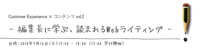 2014年6月10日 11:30顧客体験を向上させるコンテンツとは? を考えるシリーズイベント「Customer Experience×コンテンツ」。第2回目となる今回は、Webライティングをテーマとし、読まれそして共感されるコンテンツ作成の考え方、国内外のトレンドなどをご紹介。