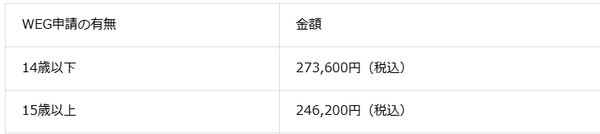 ※14歳以下の方はWEG申請手続きが必要となるため、代行費用が発生いたします。