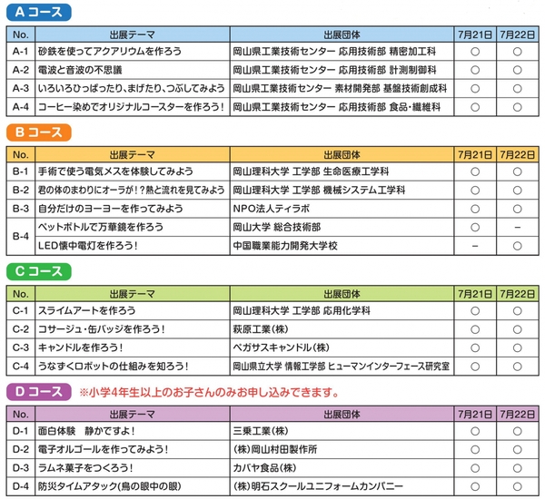 今年は「科学で輝く!発見の夏!」をテーマに 17テーマの展示・体験コーナーを設け、子どもから大人まで科学技術に関心を深められるイベントになっておりますので、是非ご参加ください!