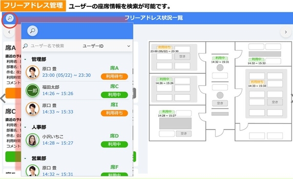●フリーアドレス機能:共有デスクに自由に場所を確保
