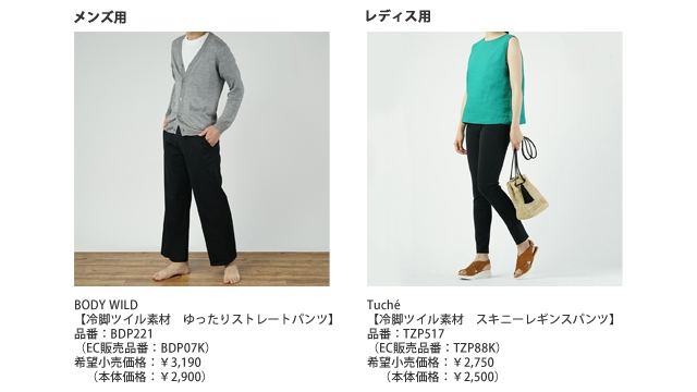 グンゼ株式会社(本社:大阪市北区、社長:廣地 厚)は、猛暑に向けた冷感素材「冷却ツイルストレッチ」を新開発し、メンズブランド「BODY WILD(ボディワイルド)」とレディスブランド「Tuché (トゥシェ)」より冷たい履き心地で高機能なストレッチパンツを6月から発売しました。