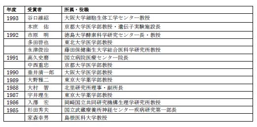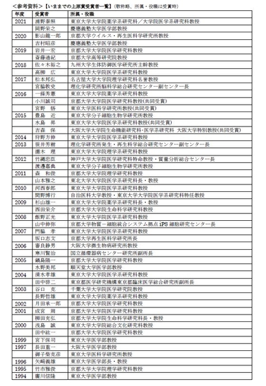 上原賞 2 名 副賞1 件 3,000 万円 ※掲載は五十音順
