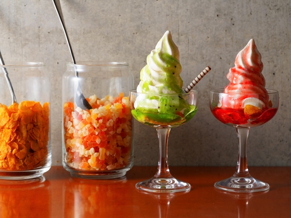 ・大分名産の地酒やソフトドリンクと、お酒のお供に大分県産お漬物&いなり寿司をご用意。焚火スイーツやオリジナルパフェが作れる〆パフェコーナー(18時~22時)