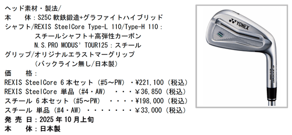 ヨネックス株式会社(代表取締役社長:アリサ ヨネヤマ)は、2015年の発売以来ご好評いただいておりますグラファイトハイブリッド鍛造アイアンシリーズより、好打感と高いコントロール性能が特徴の中上級者向け「EZONE CB302 グラファイトハイブリッド鍛造アイアン」を2025年10月上旬より発売します。