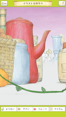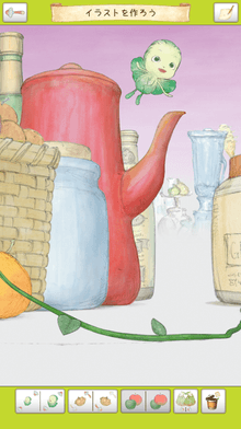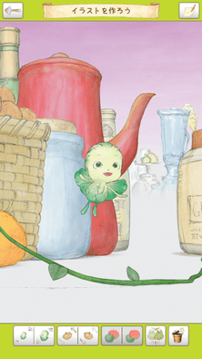 見付けたアイテムはコレクションされ、コレクションしたアイテムとステージ背景を利用してオリジナルのイラストを作ることができます。