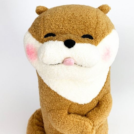 ニッコニコの笑顔につられて笑ってしまいそうな、可愛い嘘のカワウソのぬいぐるみです。