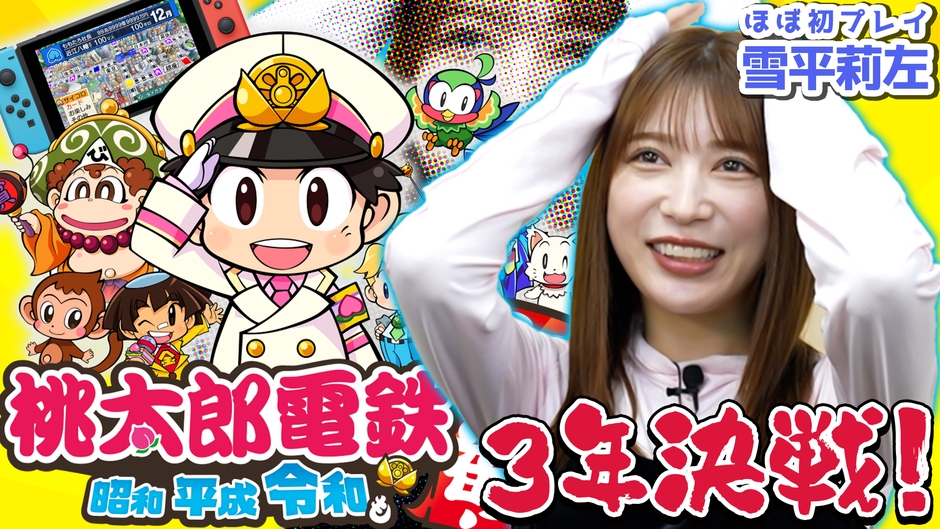 今回は「【桃太郎電鉄】全財産を奪われた雪平莉左が大激怒!?全員初心者の3年決戦は予想外の結果に!」と題し、視聴者プレゼントをかけてスタッフとゲームで対決します。