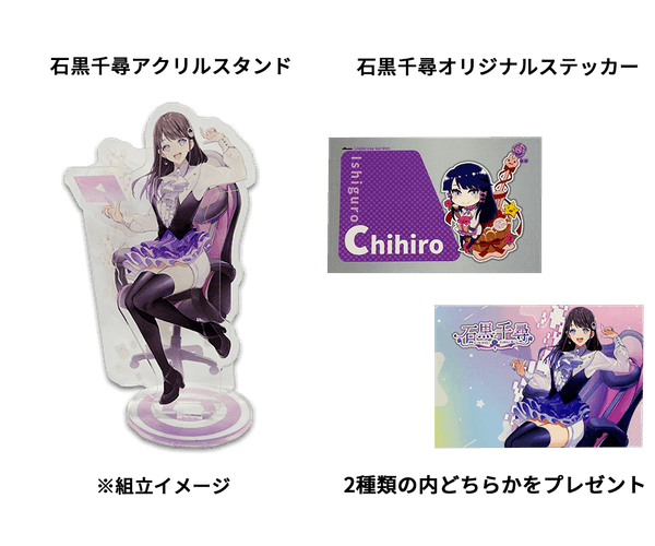 石黒千尋 LEVEL∞コラボゲーミングPCをご購入頂いた方、先着50名様にもれなくアクリルスタンドとステッカー2種類の内いずれか1つをプレゼント。