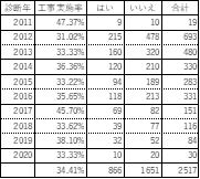 耐震補強工事の実施率を年ごとに集計したところ、おしなべて30%を超えていますが、とりわけ2017年と2019年は前年に比べて大きく実施率が上がっていました。これは2016年(熊本地震)、2018年(大阪北部地震・北海道胆振東部地震)に大地震が発生したことで、耐震化への意識が高まったことが要因のひとつだと考えられます。