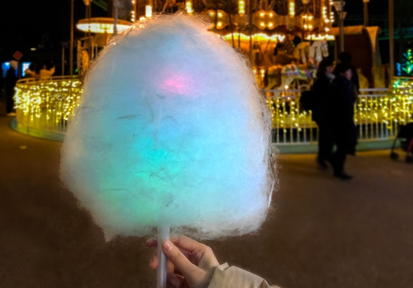イルミネーション開催日の点灯時間に、パームプラザにて毎年好評の「光るわたあめ」を販売します。写真映えすること間違いな