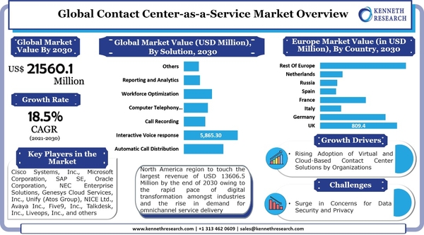 リサーチ・ネスターの一部門であるケネス・リサーチは最近、「コンタクトセンター・アズ・ア・サービス(C-CaaS)市場:グローバル需要分析と機会見通し2030」と題する調査レポートを発表し、これには、業界の成長ドライバー、抑制、需要と供給のリスクなどの著名な市場分析パラメータの一部、COVID-19の影響、市場の成長に関連する最新の傾向と将来の機会に関する詳細な議論も含まれています。