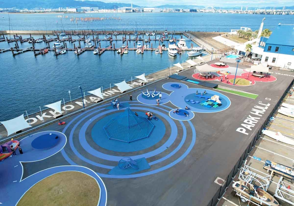 PARK HULL(パーク ハル)は、大阪北港マリーナHULL内にあるデザイナーズ公園です。港の廃材など、環境的なアプローチからアップサイクルされたデザイン遊具やツールを採用するだけでなく、 想像性を遊びから培う仕掛けや、安心して外遊びを楽しんでもらえる設備をご用意しております。