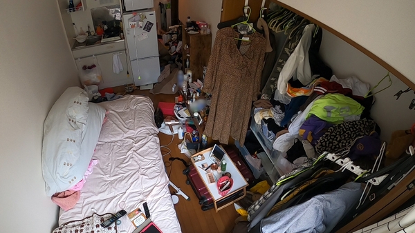 この日訪れたのは、グラビアアイドルの川島愛里沙さんのお宅。一人暮らしのワンルームは玄関から足の踏み場もない状態で、奥に入るのも一苦労。衣類が溢れて扉が閉まらないクローゼット、化粧品や飲み残しのペットボトルなどでいっぱいの机の上・・・。実は川島さんは以前、自身で一度この部屋を掃除したのですが、わずか4か月で元に戻ってしまったといいます。