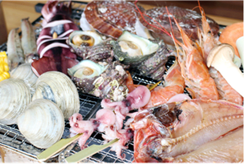 市場直送のサザエ・ホタテなどの新鮮な貝が90分間食べ放題のプランです。