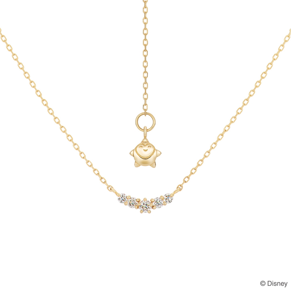 このほどの新作は、星空をイメージした5ピースのダイヤモンドが輝くネックレス、ヒロイン「アーシャ」と「スター」を刻印したゴールドプレートネックレス、“願い星”のキャラクター「スター」をコロンと立体的にデザインしたピアスです。