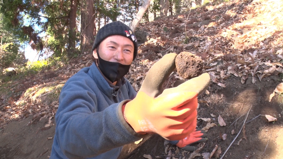 そんな谷田さんがこの時期もっとも力を入れて採っているのが世界三大珍味のひとつ「トリュフ」。土の中に埋まっているため、海外では犬や豚が匂いで探し出しますが、谷田さんはこれまでの経験や勘、鋭い嗅覚を頼りに自らの手でひたすら掘って探します。かなりの重労働に加え、今年は不作に見舞われる中、北海道から沖縄まで国産トリュフを欲しがっている人がたくさんいるため、どうしても採らなければなりません。果たしてこの日の収穫は・・・?
