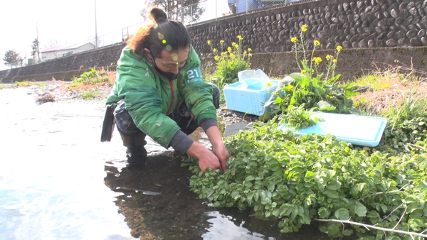 偶然見つけた大きな鯉を手づかみで捕獲する谷田さん。しかし、今は必要ないため無駄には獲らず、川に返しました。また、あらかじめ設置しておいた仕掛けにナマズを発見したシーンでは、「ナマズを食べたことがない」と話すスタッフに、自宅で「クレソンとナマズの炒め物」を振舞ってくれました!手慣れた包丁さばきの理由は、調理師専門学校を卒業後、熱海のホテルや中華料理の名店で腕を磨いた経歴にありました。しかし、長続きせず、ペンションで働きながらスノーボードのプロを目指したり、焼き鳥屋さん、漁師など、40歳までさまざまな仕事を渡り歩いたという意外な過去も・・・そして、趣味がきっかけで今の仕事につながったといいます。