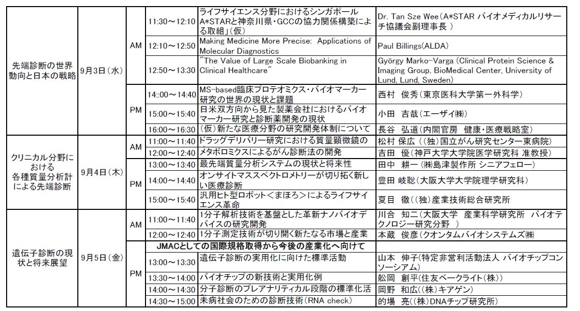 9月4日:クリニカル分野における各種質量分析計による先端診断