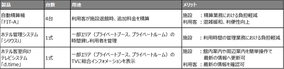 当社が提供する「FIT-A」は温浴施設に特化した自動精算機で、館内の各施設で発生した追加料金をリストバンドで管理し、退館時にまとめて精算する運用が可能です。精算業務におけるスタッフの負担軽減や利用客の混雑緩和などの効果に期待いただき、導入にいたりました。「FIT-A」に加え、「シリウスi」や「d.time」、グループ会社の株式会社USENが提供するAI搭載の店舗向けBGMサービス「USEN MUSIC シリーズ」や業務用ロボット(配膳・清掃・運搬)もあわせて導入することで、施設運営を総合的に支援、ホスピタリティの向上にも貢献してまいります。