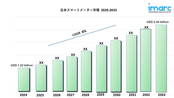 IMARCグループの最新レポートによると、日本のスマートメーターの市場規模は2024年に12億2000万米ドルに達しました。今後、IMARCグループは、2025年から2033年にかけて年平均成長率(CAGR)8%を示し、2033年までに市場が24億4000万米ドルに達すると予測しています。スマートインフラストラクチャの採用は、政府の強力なイニシアチブに支えられて拡大し続けています。