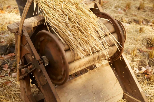 体験の流れ1 お米の脱穀、籾摺り、精米をレクチャー