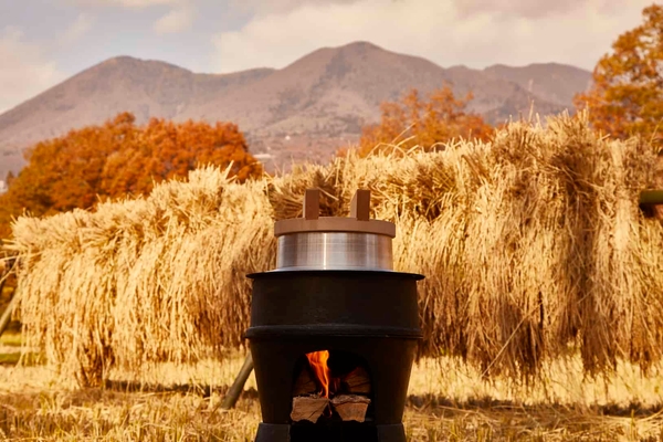 米農家が教える、一番美味しいお米の食べ方で、炊き立てのお米を食します。収穫したてのみずみずしさが残るお米を、羽釜で炊飯し、那須岳を望む田んぼの畔で楽しみます。合わせて、「たまり漬け」など、那須おすすめのご飯のお供を用意します。