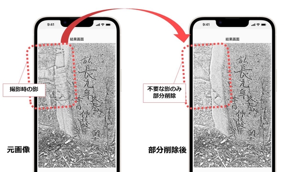 独立行政法人国立文化財機構奈良文化財研究所(以下、奈文研)は、石碑に刻まれた文字や文様に光を当ててその影から拓本をとる技術「ひかり拓本(奈文研特許取得済)」のスマートフォン用アプリ「ひかり拓本」(iOS/Android版)を2023年6月26日に正式リリースしました。このアプリは、昨年、奈文研が独立行政法人国立文化財機構文化財活用センター(以下、文化財活用センター)とともに開発資金等についてクラウドファンディングを実施し、全国からのご支援を得て実現したものです。