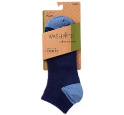 本商品に使用する「和紙」繊維は原料に森林管理された針葉樹の廃材を使用した、環境にやさしいソックスです。極限まで細くした和紙を芯糸のポリエステルに撚糸させる新技術により、一般的な和紙繊維とは違うソフトな新触感を実現しました。和紙の特長である抗菌性、消臭機能、吸水速乾性をいかした商品です。また、ゆったりソフトくちゴム設計、和紙繊維ができるだけ肌にあたる設計、左右で形状を変えた指なり設計で履き心地にもこだわりました。グンゼの人気ブランド「BODY WILD」、「SABRINA」、「ACTIVE STYLE」でWASHIITOとのコラボソックスもラインアップ。