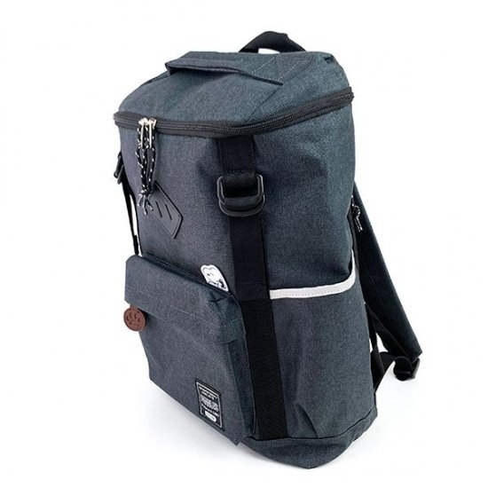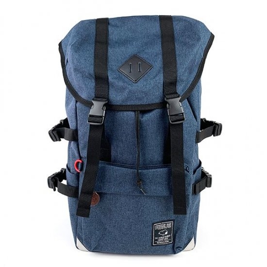 こちらは、デザインが少し違うタイプです。カラーはネイビーで、収納力もアップしています。バックル遣いもあちこちに見られて、リュックらしさがプラスされていますよね。